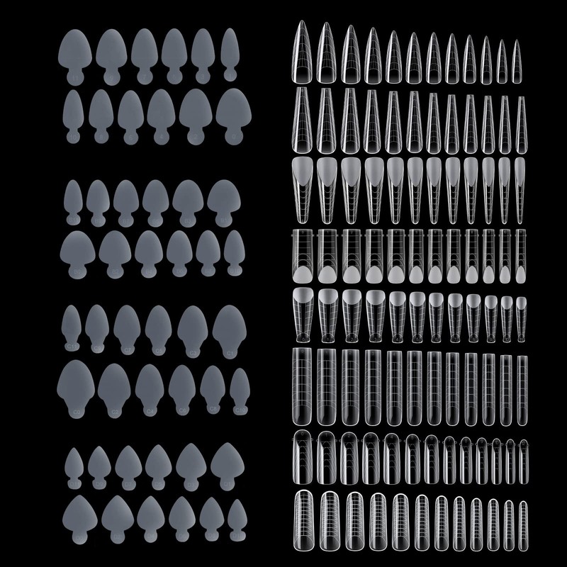 - Package Included: 8 type dual nail mould*24pcs/type (12 sizes, 2pcs/size); 4 type silicone sticker*24pcs/type (12 sizes, 2pcs/size)