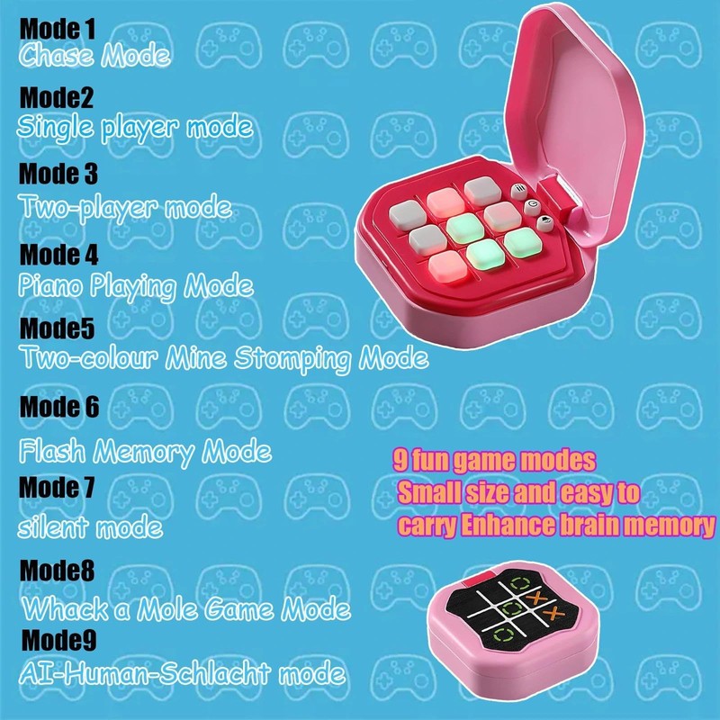 Smart games with 9 modes offer not only variety, but also educational added value: they promote concentration, logical thinking and responsiveness in children and adults. The bright colours and intuitive operation make it a motivating learning and gaming experience.