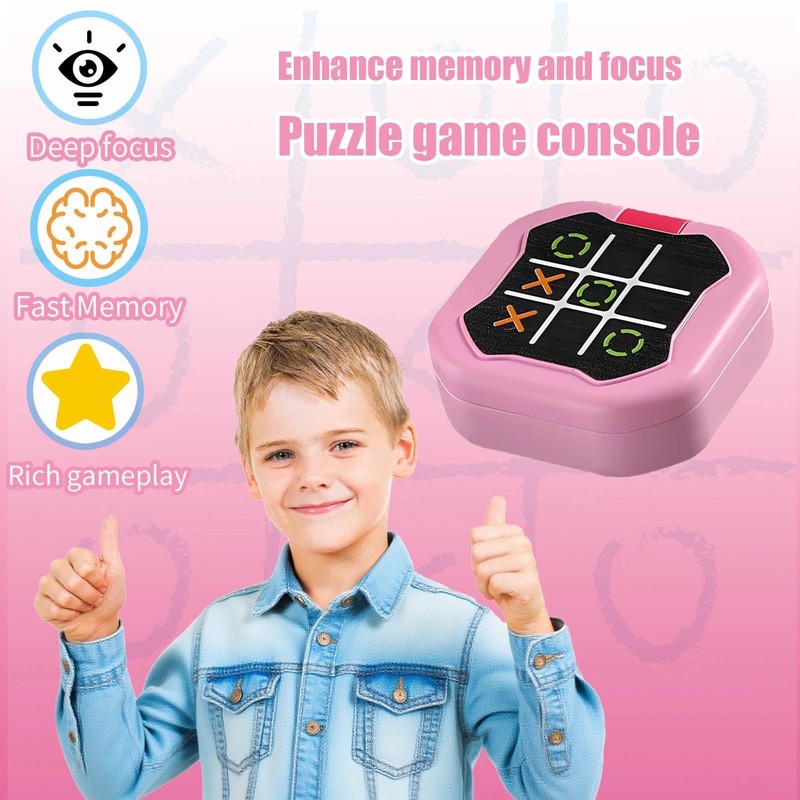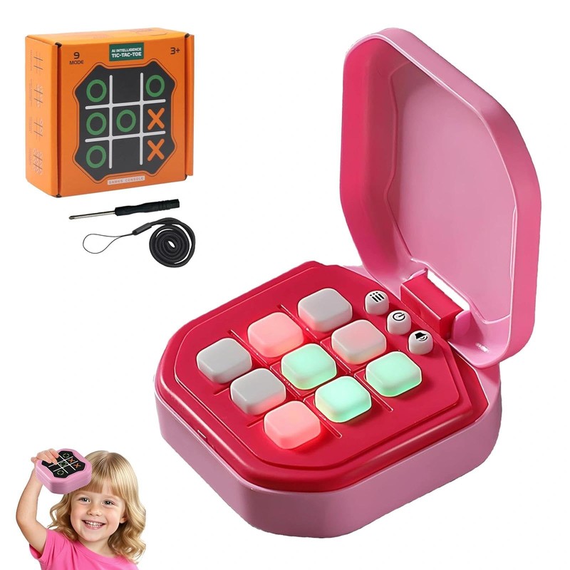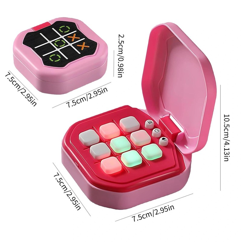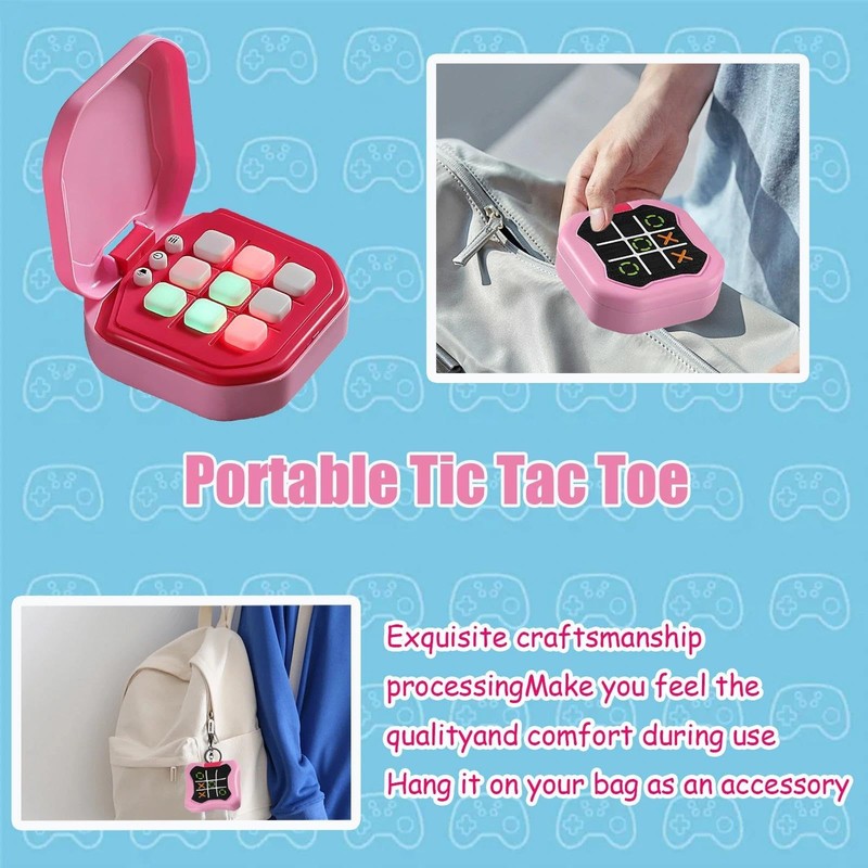 - Mini Tic Tac is easy to carry: handheld game console with only 7.5 x 7.5 x 2.7 cm (closed), the console fits comfortably in your pocket - ideal for travel, restaurants, cars or picnics, the lightweight design with carrying strap allows fun at the touch of a button, without space problem