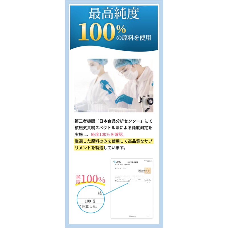- 「お客様に安心して飲んでいただくために」第三者機関による検査を実施 核磁気共鳴スペクトル法による純度測定を実施し、純度100%を確認
