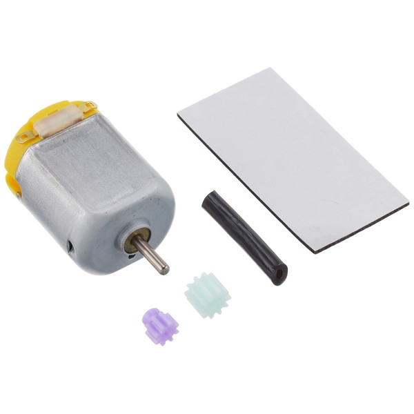 - Comes with double-sided tape for fixing the motor, 2 types of pinion gear, and a rubber pipe for power transmission