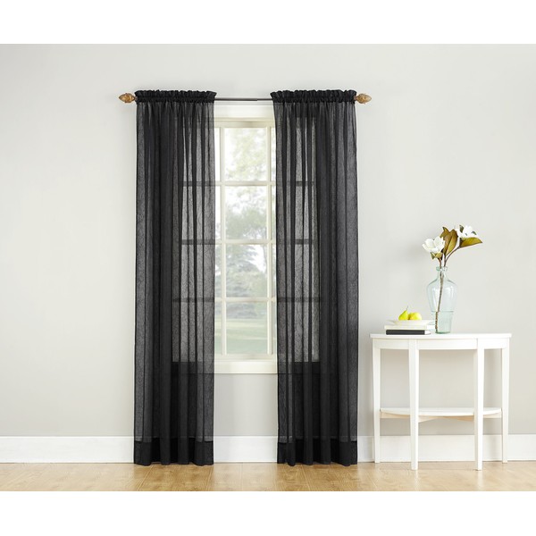 No. 918 Erica Crushed Texture Sheer Voile Rod Pocket Curtain Panel, 51 in x 63, Black