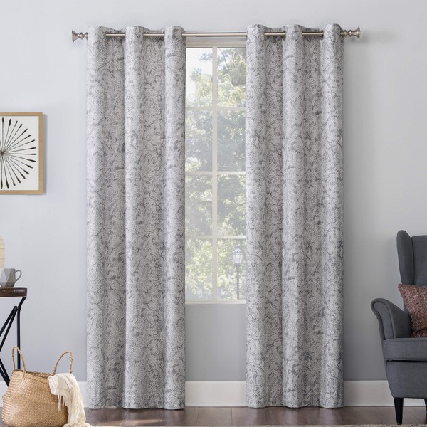 No. 918 Kenji Medallion Draft Shield Fleece Insulated Energy Efficient Grommet Curtain Panel, 40" x 63", Gray