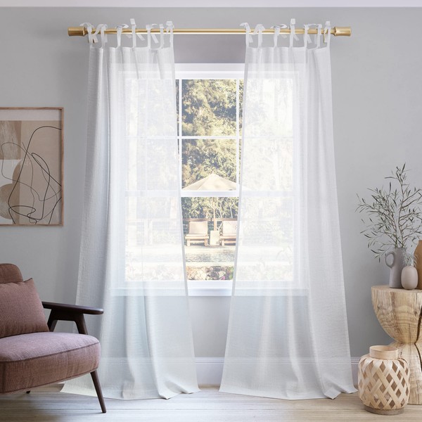 No. 918 Winnie Slub Textured Linen Blend Sheer Tie Top Curtain Panel, 50" x 84", White