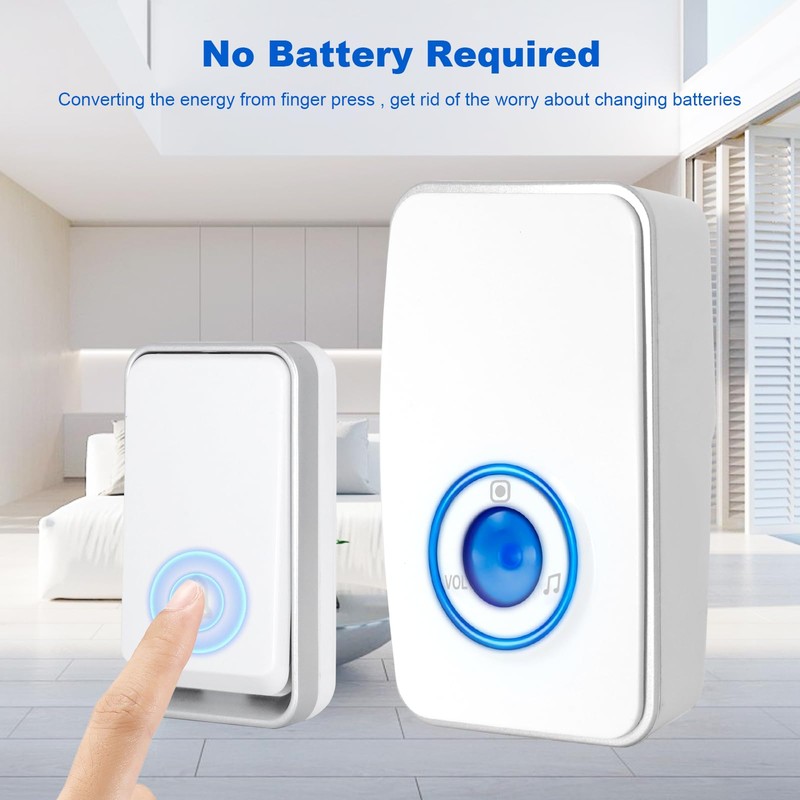 - 【BATTERY FREE】: Transmitter is converting the energy from finger press, one receivers is easy to get rid of the worry about changing batteries, more conveniently and more environment friendly.