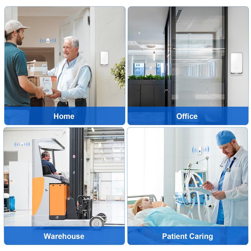 - 【STRONG SIGNAL】: 150m/500ft Wireless Range. It’s ideal for large spaces which with several entranceways or multiple floors big house, office, hotel service and other areas. Never miss a visit or delivery.