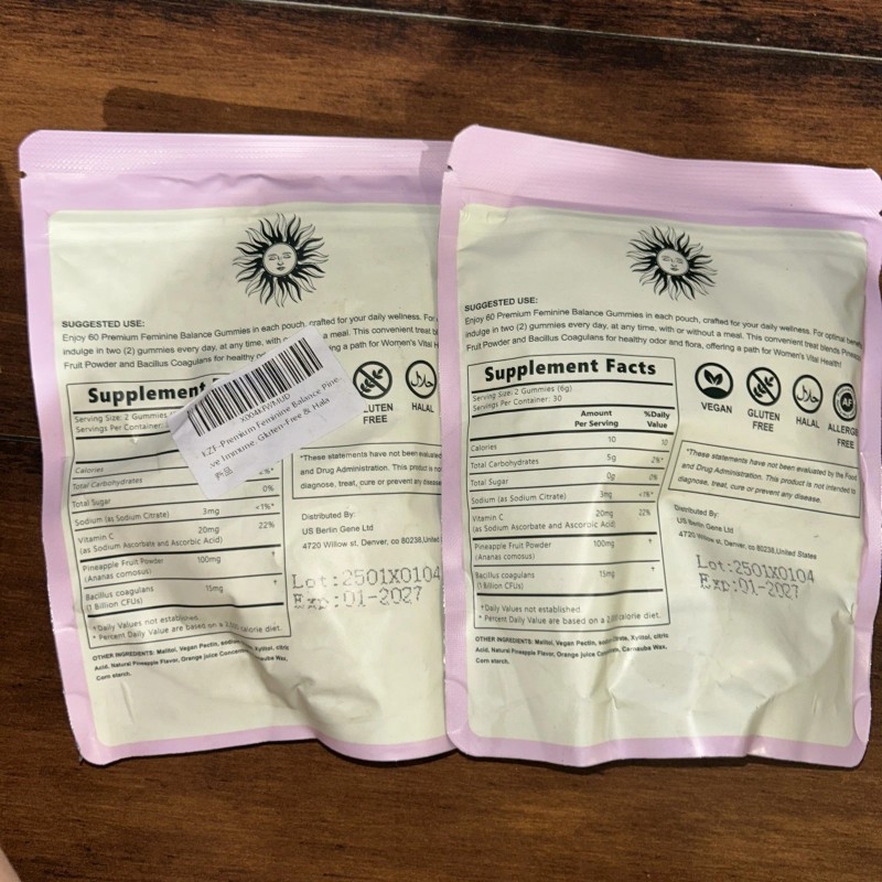 2 Vital Natural Feminine Balance Gummies - Hawaiian Pineapple 60 Gummies.