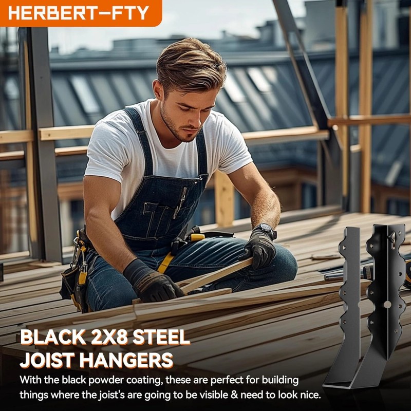 - AESTHETICALLY PLEASING: If your joists are visible, these Black Powder-Coated, 2X8 steel joist hangers were perfect while installing a pergola. Used them on exposed trusts and they looked great with a nice powdered coated finish. The black powder coating adds a modern, attractive touch and the edges are rounded smooth and not sharp