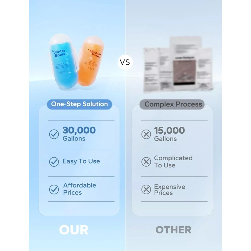• 【Vertical floating is considered a normal phenomenon】Say Goodbye to Green Water - Our winter kit maintains the clarity and vibrant blue color of the pool water for the next season.