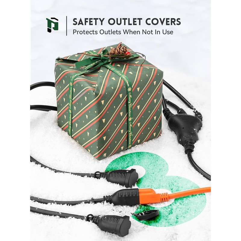 - 🎄【Protection】 Weather-resistant flexible PVC jacket protects power cords from rain, sunlight and abrasion. Each female plug is equipped with a safety cover that protects it from rain, snow and dust. Temperature Range: -40°F to +140°F.