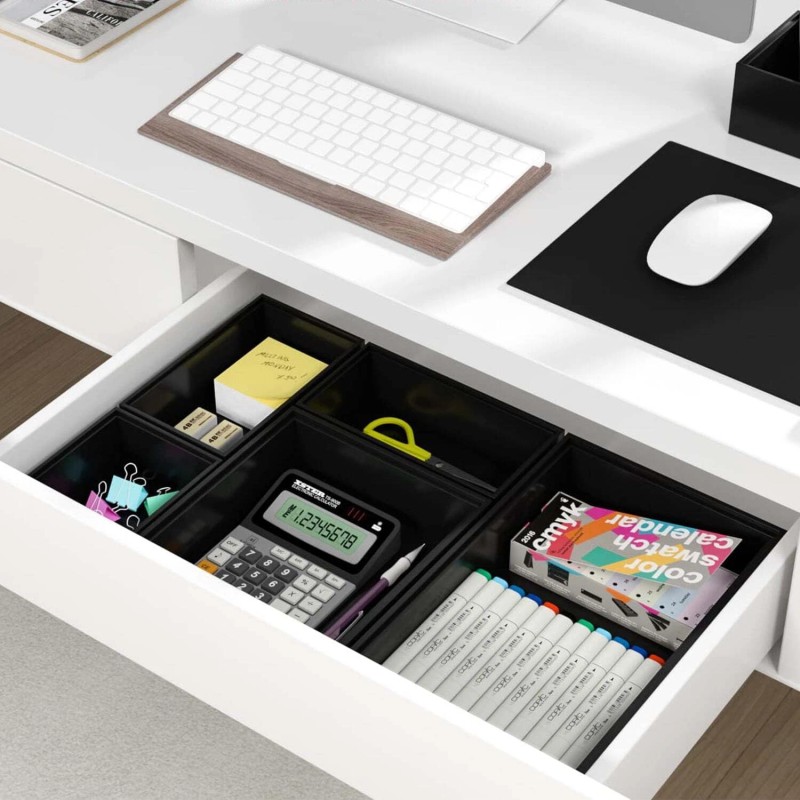 The drawer organizer includes 4 sizes, so you can DIY and customize the arrangement according to your needs.The bathroom drawer organizers can be stacked to save more you space, especially when organizing desk, bathroom countertop or the higher drawers.