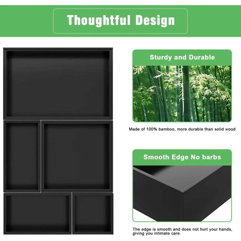 - Accessories: the drawer organiser system comes with non-slip pads and flexible dividers. Divide the bamboo storage box yourself as it suits you best.