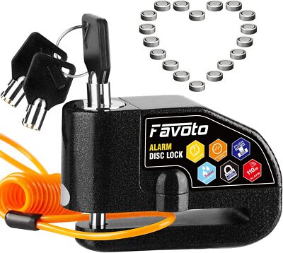 No Brand Favoto Alarm Disc Lock, 3 Keys and 18 Batteries (5-Year Availability), 110 dB