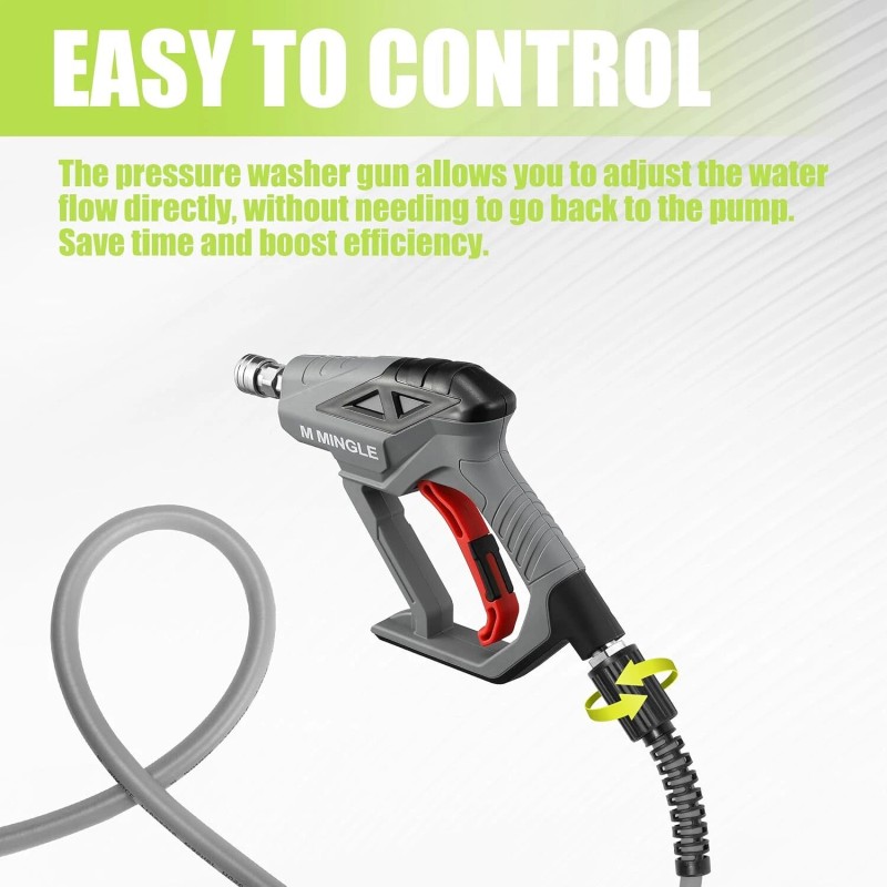 - Power Washer Gun: The accompanying short gun is a vital link. Connect to the sewer hose, so you can flexibly control the start and stop of the water flow and the spray time according to the actual cleaning situation. In addition, it can be used separately, adding more convenience.