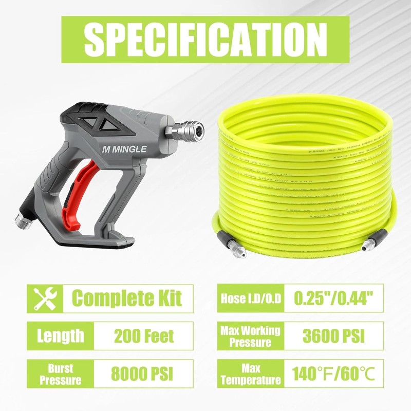 No Brand M MINGLE Sewer Jetter Kit for Pressure Washer 200 FT, Drain Cleaner Hose with