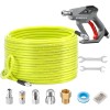 - Sewer Jetter Kit: 200 ft sewer jet hose x1; pressure washer gun x1; button nose nozzle x1; rotating nozzle x1; corner sewer nozzle x1; adapter x1(M22 female to M22-15mm male); 1/4'' quick connect plug x1; wrenches x2; box of pin x1; watertight tape x1.