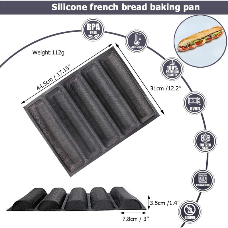 No Brand masteymoh 5-Cavity French Bread Baking Pan, Hoagie Rolls Pan, Soft Foldable for
