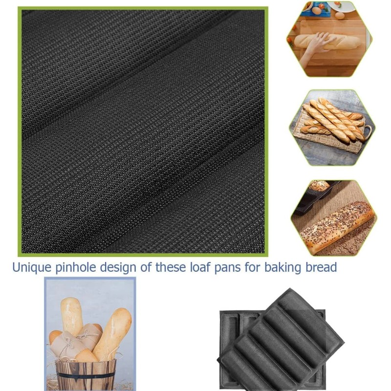 - HEATING EVENLY: These loaf pans for baking bread, are soft & flexible liners, easily foldable for storage; The mesh design makes air better circulates, and heat more evenly distributed. So the water vapor can easily flow through, making your bread turn out with a golden crispy crust; Such baguette pan is nice for baking hot dog buns, sub buns, French bread, baguette and sandwiches; Able to withstand up to 500℉/260℃, this baking liner works great in ovens or microwave, BUT NOT ON OPEN FLAME;