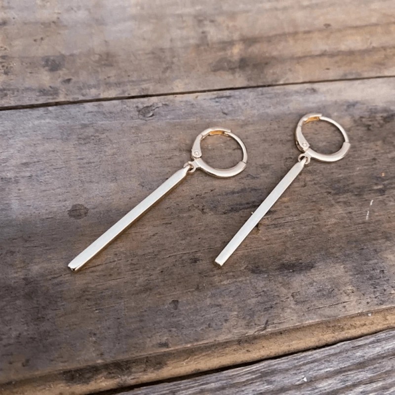 No Brand Rose Gold Bar Huggie Hoop Earrings Dangle Drop Minimalist Sleek Delicate