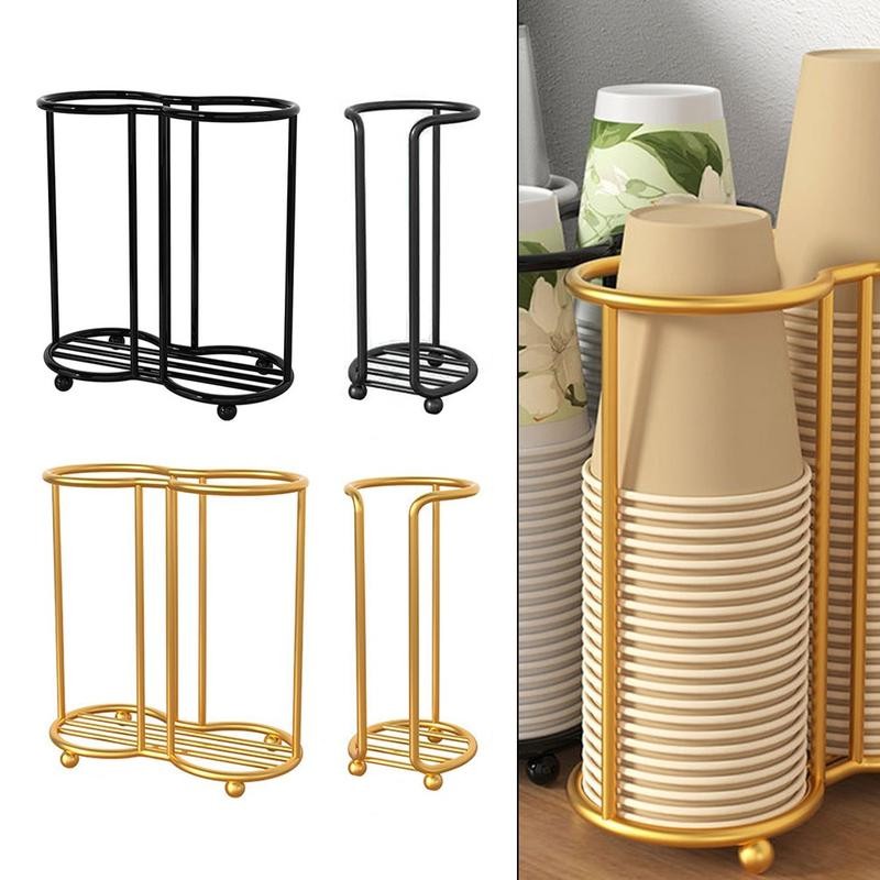 No drilling required disposable cup storage rack for water and tea cups, space-saving vertical holder organizer for home or office countertops, easy access and sturdy design:_Black and Double