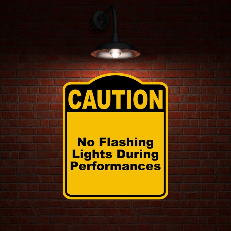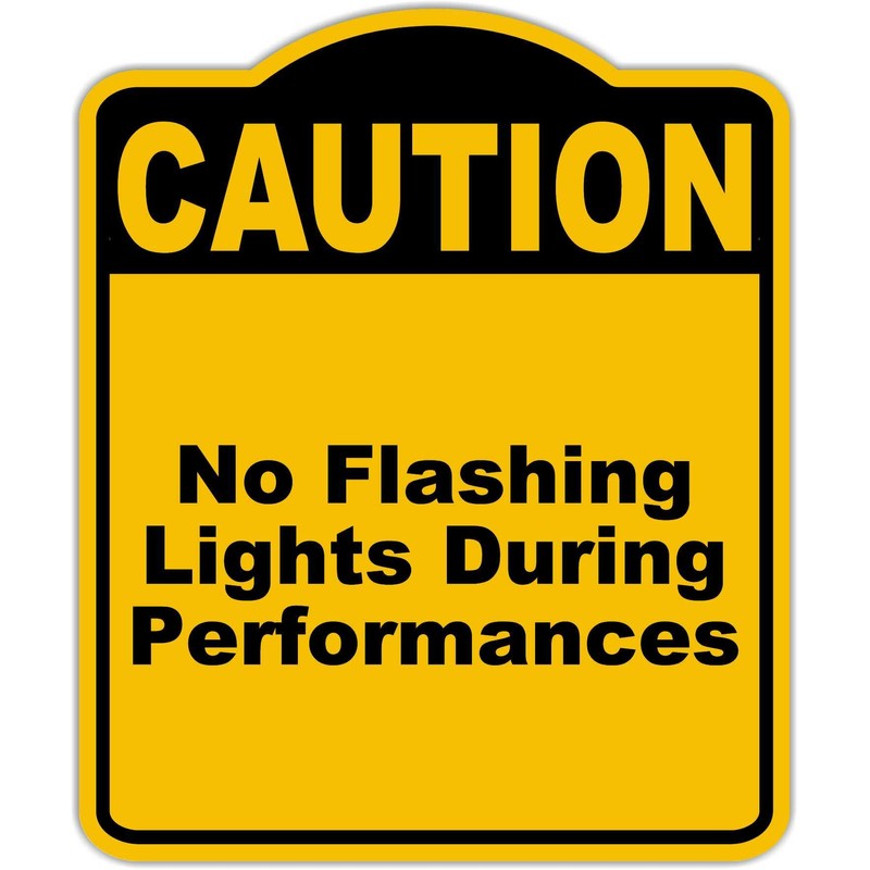 No Flashing Lights During Performances Caution Yellow Black Aluminum Composite Sign 8.5 x 10 inches