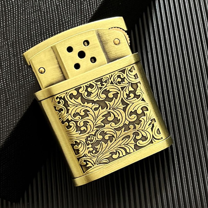 (No Fuel) Vintage Metal Kerosene Lighter, Soft Flame Candle Lighter, Gift (Gold Tiger)
