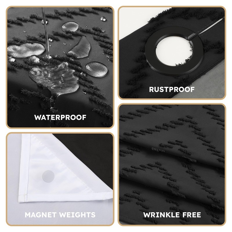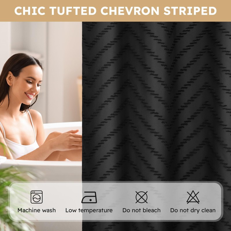 FADOTY No Hook Shower Curtain and Liner Set, Black Snap in Shower Curtain Ringless Chevron Tufted Cloth Waterproof Washable Fabric Bath Curtain with See Through Top Window for Bathroom Hotel 71" x 74"