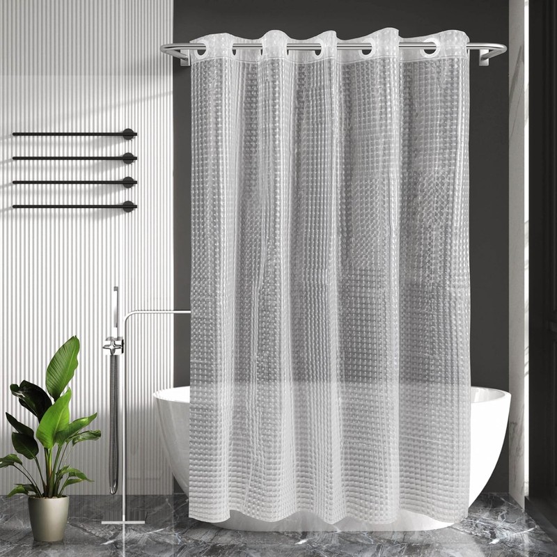 - MILDEW RESISTANT SHOWER CURTAIN LINER – EVA Plastic Clear Shower Curtain Liner is a must-have to keep water from splashing onto a bathroom floor; mold and mildew resistant plastic