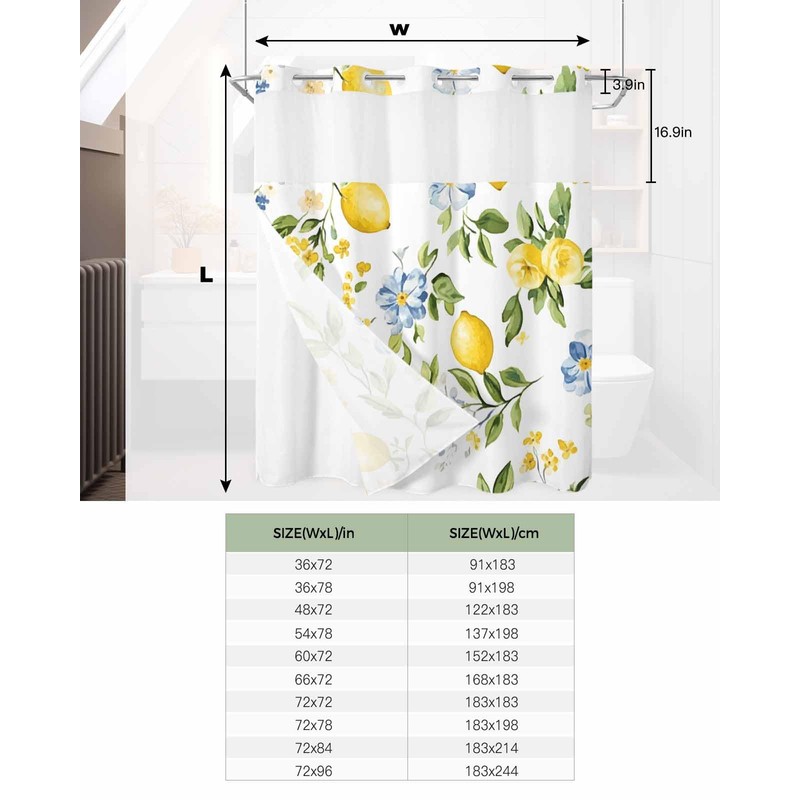 No Hooks Shower Curtain and Snap-in Liner Sets 72"x72",Summer Farm Lemon Flower Leaf Waterproof Fabric Bath Curtain Double Layers Shower Curtains for Bathroom Hotel,Spring Fruit Plant on White