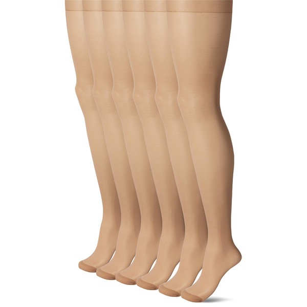 No nonsense Women's Plus 2 Regular Pantyhose with Reinforced Panty and Toe, Medium Tan - (6 Pair Pack), Medium Tan - 6 Pair Pack, 2 Plus
