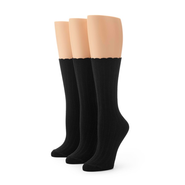 No Nonsense Women's Scallop Pointelle Crew Sock, New Black - 3 Pair Pack, 4-10