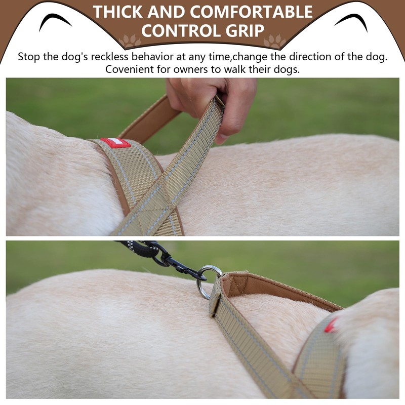 No Pull Dog Harness, Adjustable Reflective Escape Proof Dog Harness Outdoor Walking, Quick Fit Dog Vest Harness (Khaki, L)