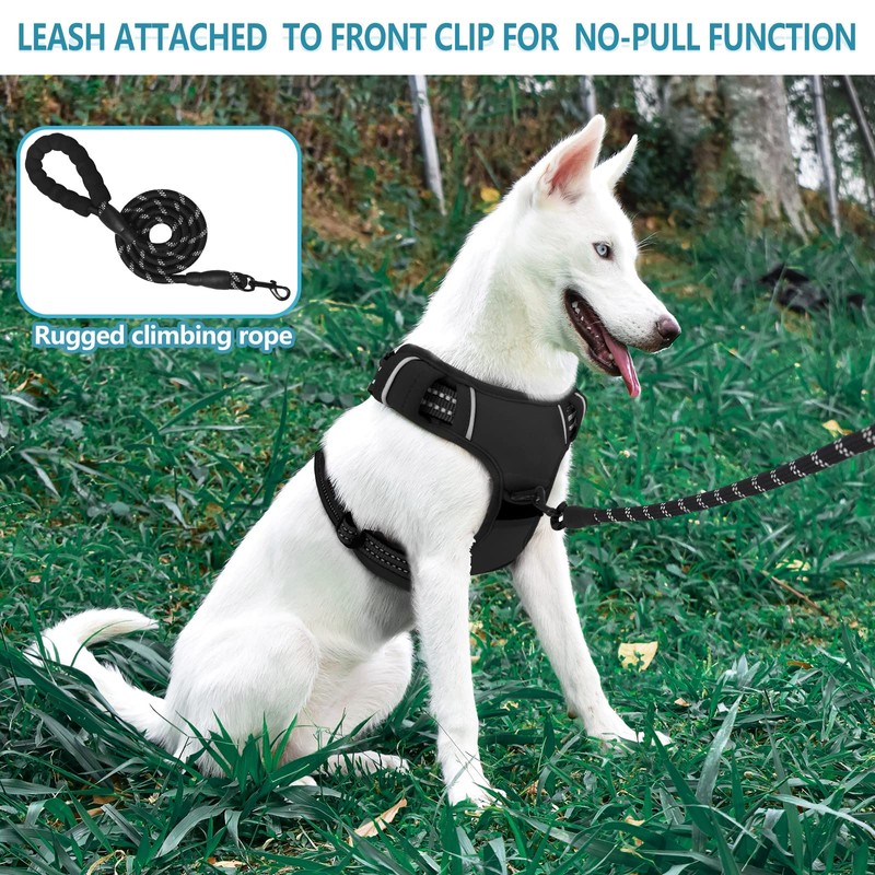 No Pull Dog Harness for Small Medium Large Dogs Adjustable Reflective Pet Vest with Front clip Handle Padded dog harness and lead set best for outdoor Training and walking Black M