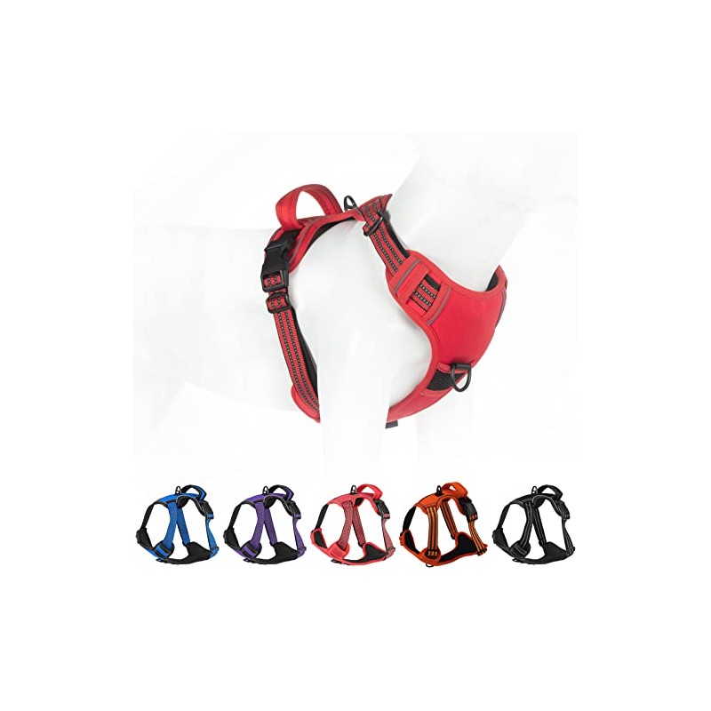 - No Pull & Better Control--The two clips on the back and chest of the dog harness allow you to guide your dog more easily. Especially for dogs who like to charge forward, the anti-pull dog harness is more comfortable than a collar. The padded handle at the top of the harness also allows you to safely control your dog and stop or direct his movements on the street, stairs or when getting out of the car.