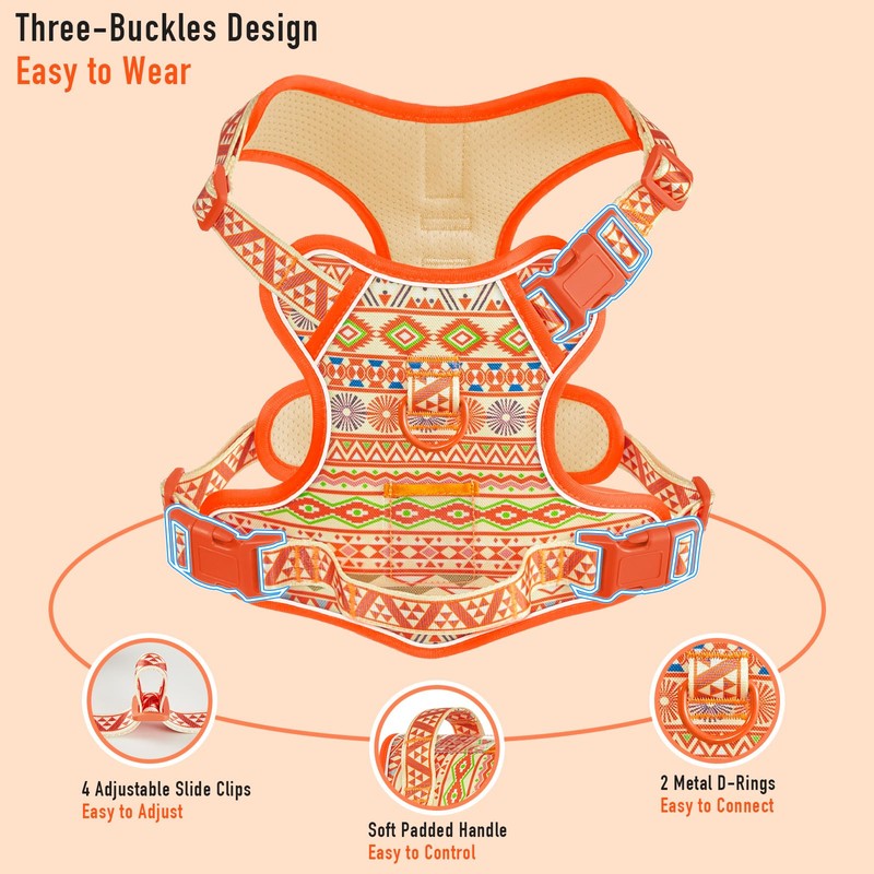 3 buckles make it so easy to put this harness on your dog and take it off, all done by yourself, without another person's help.