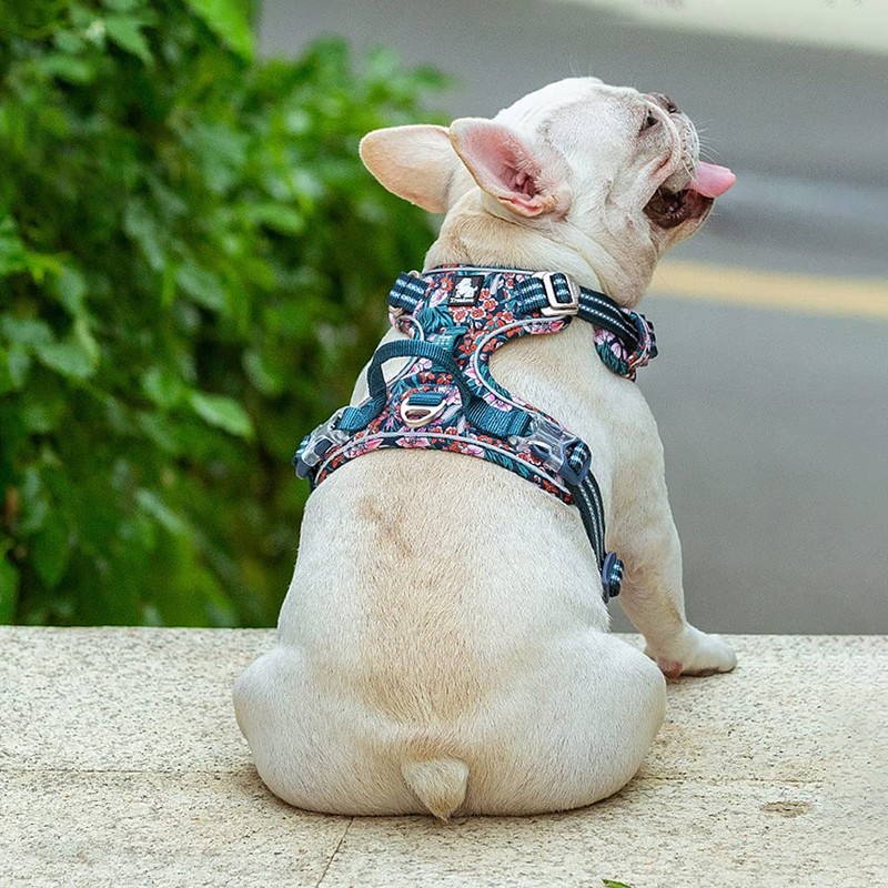 No Pull Dog Harness Reflective Adjustable Dog Vest Harness with Front Clip Easy Control Handle for Large Dogs Padded Puppy Harness 3 Snap Buckles Easy to Put On & Take Off Floral Blue XL