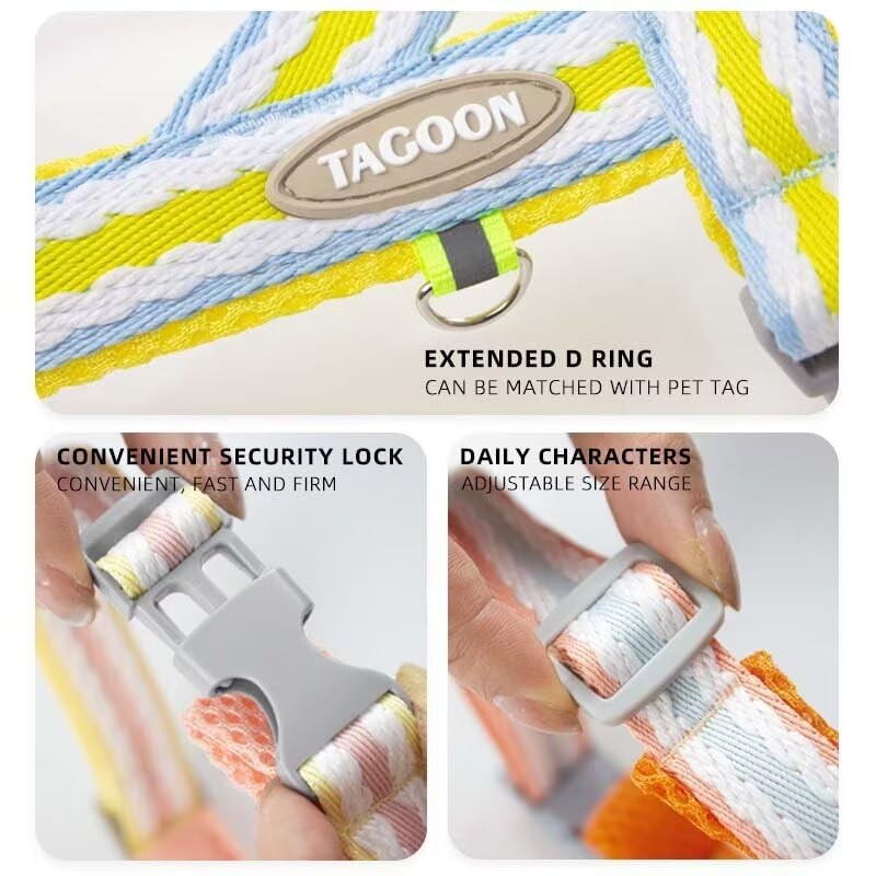 - 【Easy To Wear And Adjust】: This adjustable cat and dog harness is simple to put on and off with buckle. The adjustable straps which allow a just-right fit for your pets. STEP IN then you're ready for walk