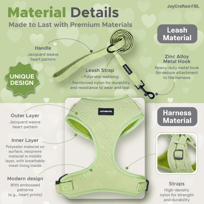 No Pull Puppy Harness and Leash Set – No Choke Neoprene Dog Harness for Medium Dogs (25–40lbs) – Green(M), Lightweight Breathable Mesh with Unique Heart Pattern, Adjustable Fit