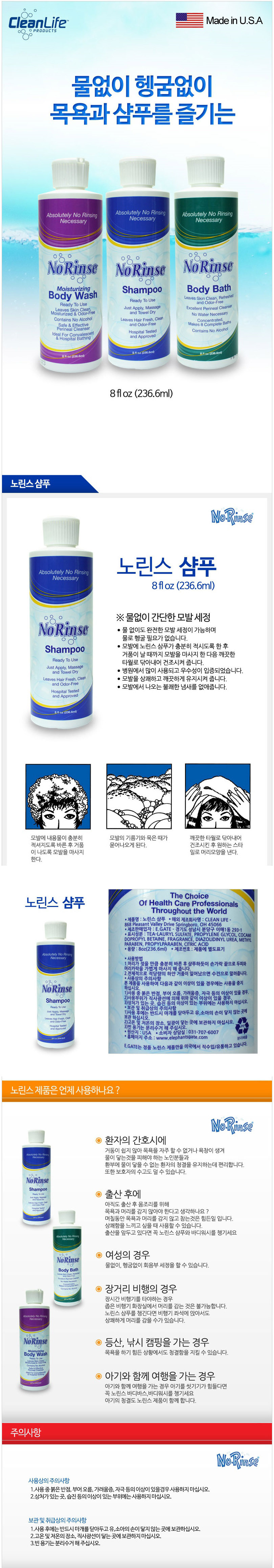 No rinse shampoo 236ml without water / 물없이 헹굼없이 노린스 샴푸 236ml