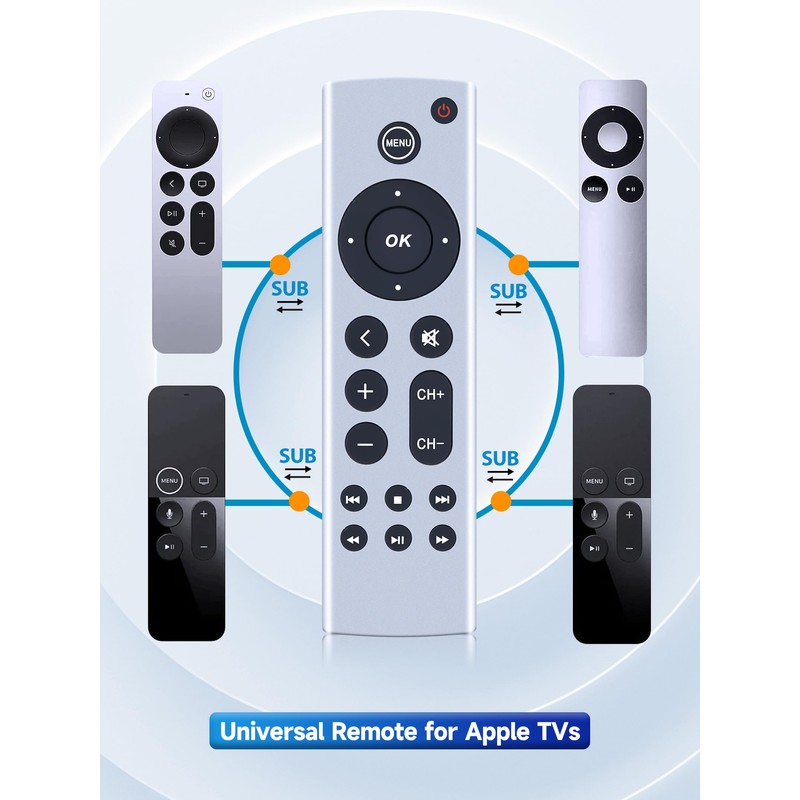 - 【compatibility】Replacement Remote For All Apple TV 4K/ Gen 1 2 3 4/ HD A1469 A1378 A1218 A1294 A1218/MA711 A2843 A2737 A2169 A1842 A1625 A1427 MC572 MD199 A1625 MGY52 MLNC2 MQD22 MP7P2 and More