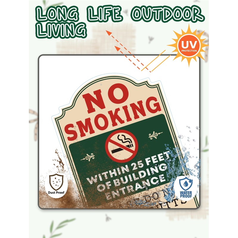 Whether you're managing a commercial building, apartment complex, school, or office, this 2-Pack No Smoking Sign helps you maintain a clean and safe environment. It politely informs visitors that smoking is not allowed within 25 feet of the entrance—and reminds them to not throw cigarette butts on the ground.