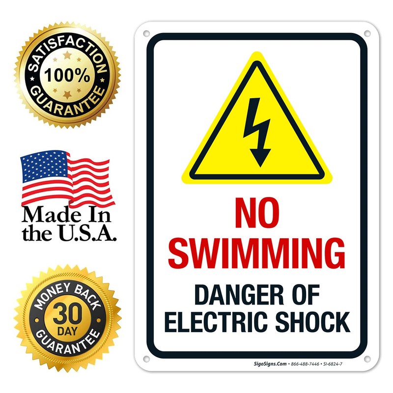 No Swimming Danger of Electric Shock Sign, 10x7 Inches, 55 mil Thick HDPS (high Density polystyrene), Made in USA