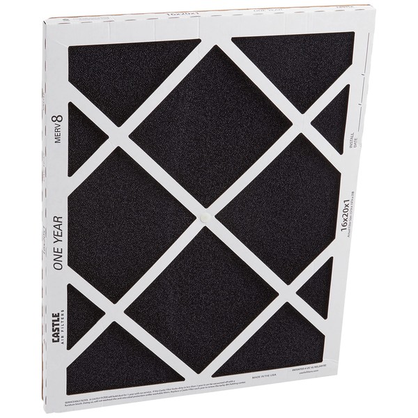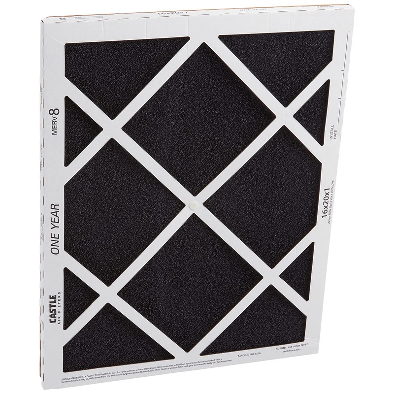 The Castle air filter is a new innovative HVAC filter that will last up to a year. This new filter will collect as much dust as 20 regular pleated filters. High air-flow with an open-cell, triple-layer core with a tacky media for collecting dust removes 93% of the most harmful airborne particles in your home (>5 microns). Treat yourself and your HVAC system to longer lasting filtration.