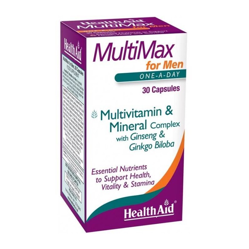 No Vendor HEALTH AID MULTIMAX FOR MEN. ESSENTIAL NUTRIENTS TO SUPPORT HEALTH, VITALITY AND STAMINA 30CAPSULES