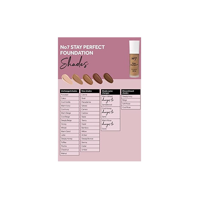 No7 Stay Perfect Foundation (New Formula) - Cameo spf30 - 30ml