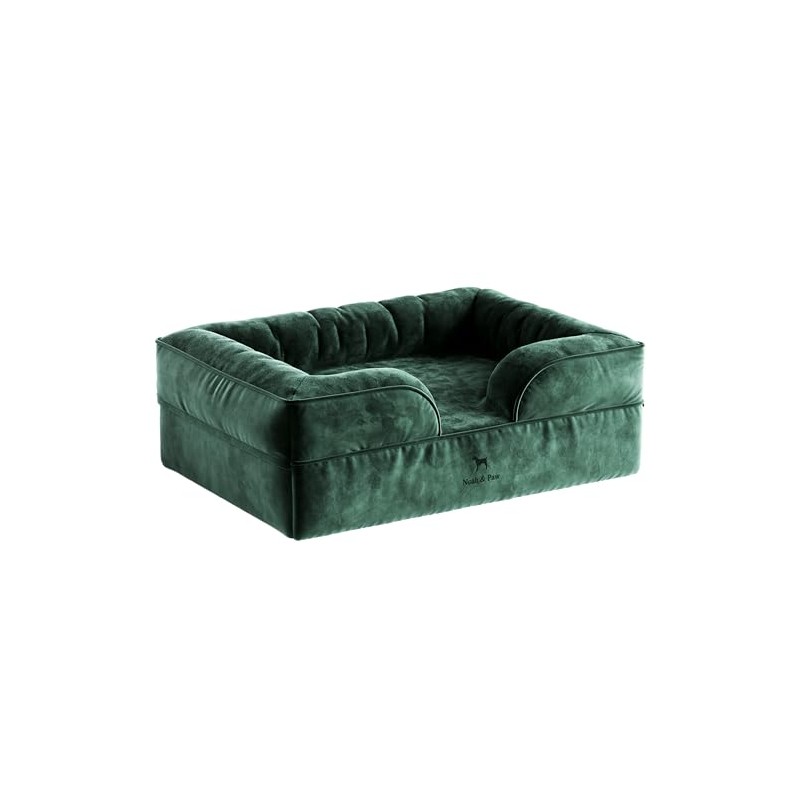 - Human-grade dog bed: The orthopedic dog bed features a 5" thick base and a 3" bolster with memory foam filling, 3-layer construction 3-inch base (30D) + 1" memory foam + 1" eggshell foam infused with cooling gel. Creating a raised dog bed of 8 inches.