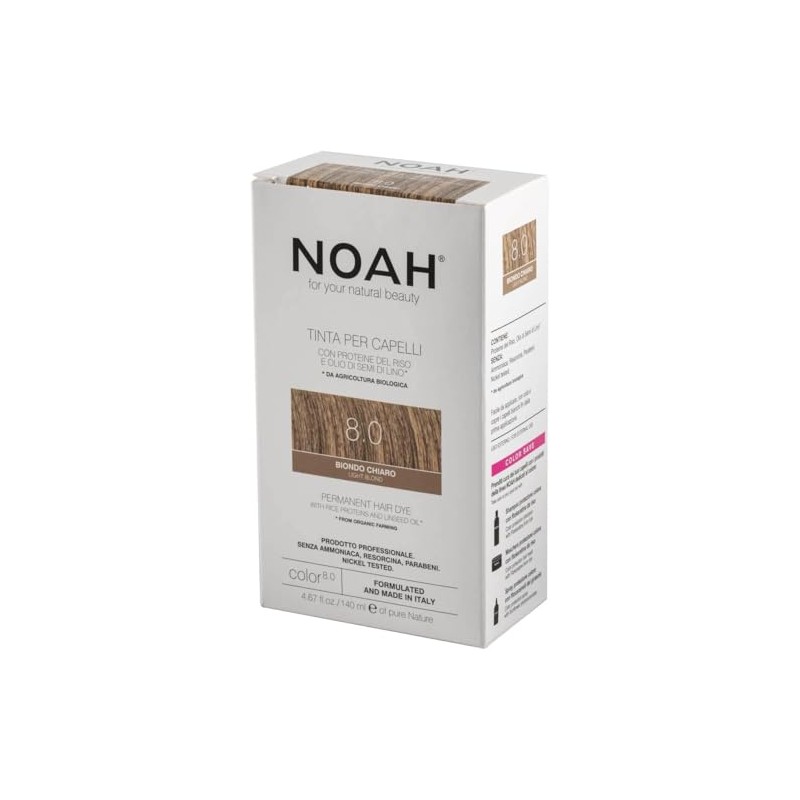NOAH Permanent Hair Dye 8.0 Light Blonde – Ammonia-Free Hair Colour with Linseed Oil & Rice Proteins - Nourishing, Long-Lasting & Grey Coverage - Complete Hair Colour Kit - 140ml