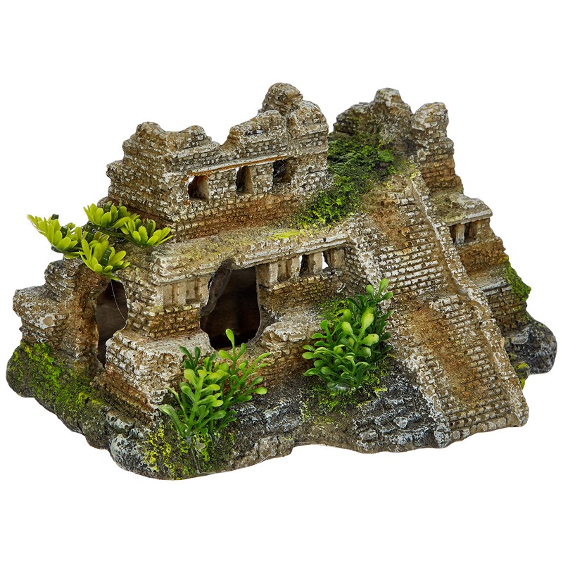 Nobby Aqua Ornaments Maya Ruin with Plants, 21.7 x 14.7 x 11.7 cm, 1 Piece