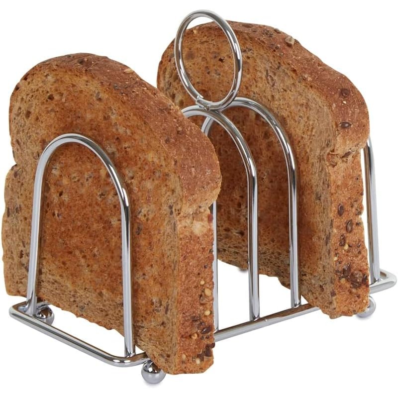 Nobel Chrome Toast Bread Rack, 6 Bread Slices Slot, Toast Cooling Holder (Chrome Round Top)
