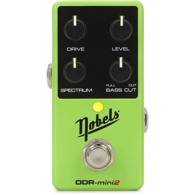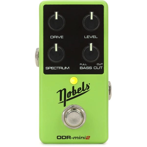 The Nobels ODR-mini 2 packs the company's legendary natural-sounding dirtbox into a small, pedalboard-friendly enclosure. There's nothing small about this stompbox's sound, however. It faithfully delivers the flexible range of tones that made its full-sized predecessor a cult classic among Nashville session players. Boasting a sound somewhere between the mythical transparent overdrive and the ubiquitous mid-forward green pedal, the ODR-mini 2 boasts a simple 4-knob control set. Drive and Level control volume and gain; the Spectrum knob simultaneously dials in your bass and treble without affecting your mids; the Bass Cut knob offers variable control over the low end. This control set gives you extremely transparent results, complementing any amp you plug the pedal into and helping you cut through the mix. You also get true bypass switching, glow-in-the-dark knobs, and 18-volt power compatibility. In summary, the ODR-mini 2 easily tackles light harmonic